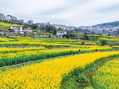 近日,江口镇五星村两百亩油菜花进入盛花期,金灿灿的花海宛如一幅绚丽的油画,吸引了众多游客前来踏青赏花,感受春日里的乡村魅力。