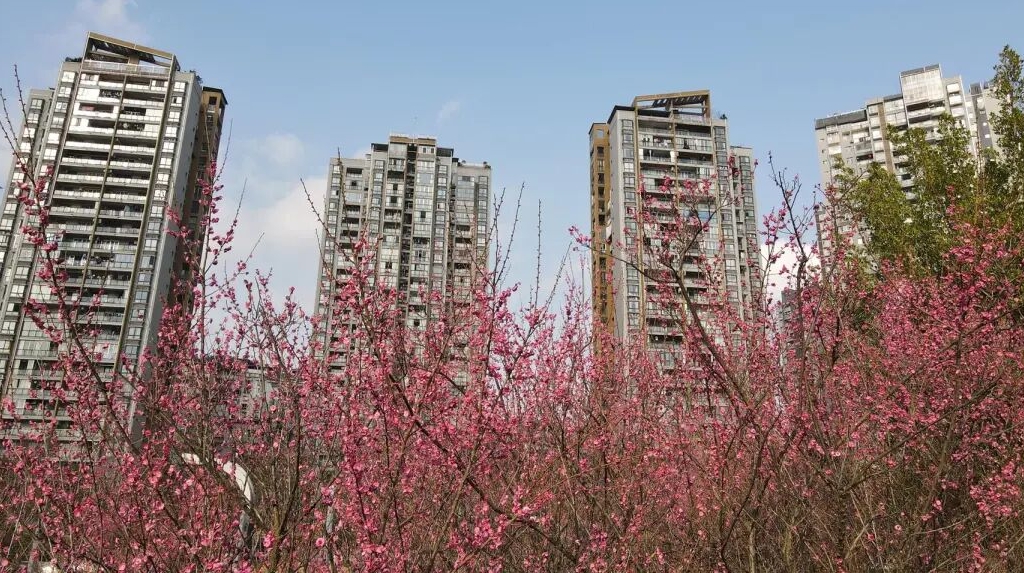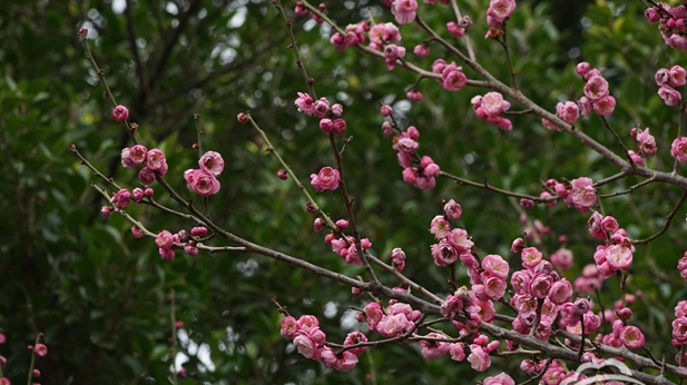 近日,随着气温变化,我县城区各公园内的红梅陆续绽放,为寒冷冬日添了一抹艳丽色彩。