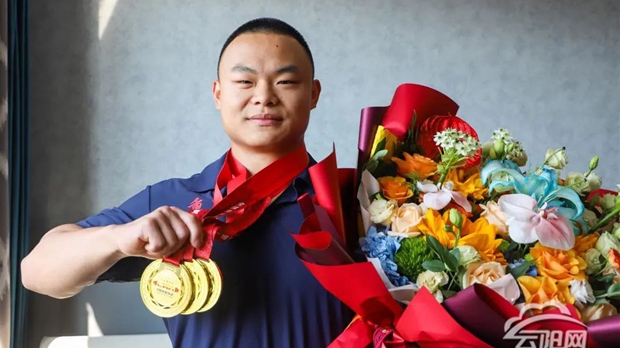 今年7月,安徽滁州。在全国U系列举重冠军赛的举重台上,18岁的丁彬深吸一口气,发力,提拉,上挺!杠铃稳稳举过头顶。
