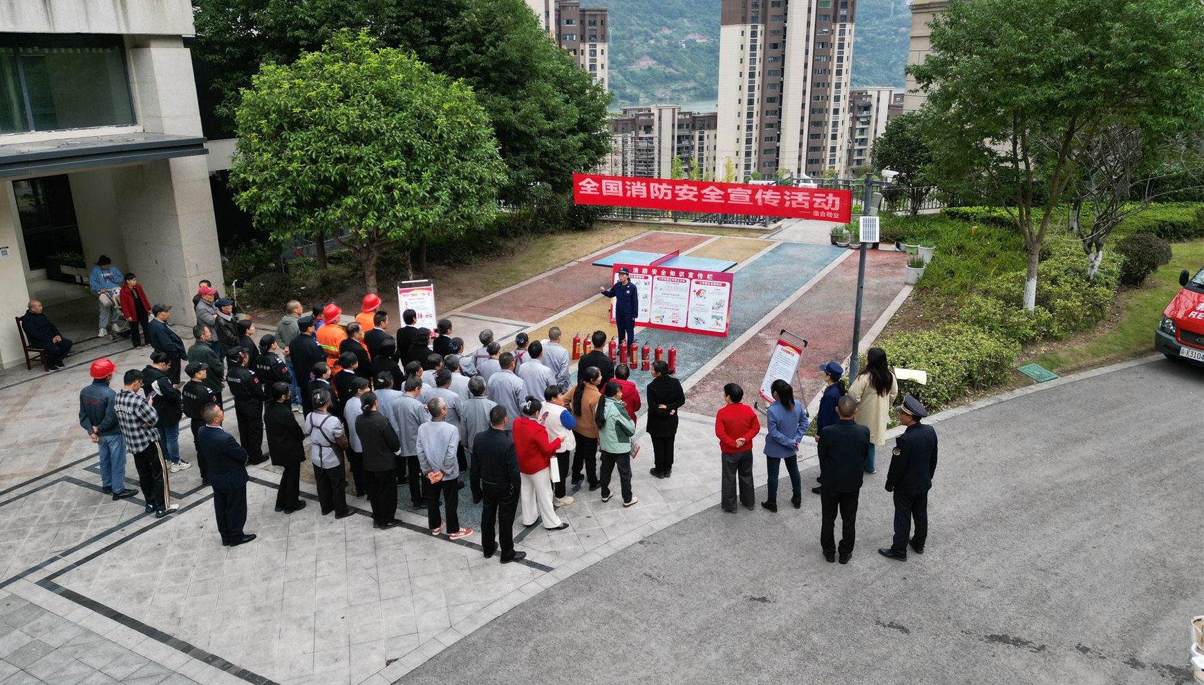 11月6日,双江街道稻场社区龙吟台小区内模拟着火点演练启动