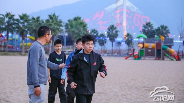 12月16日,在长江之畔的柔软沙滩上,一群身着运动服的学生正奋力奔跑、挥洒汗水。