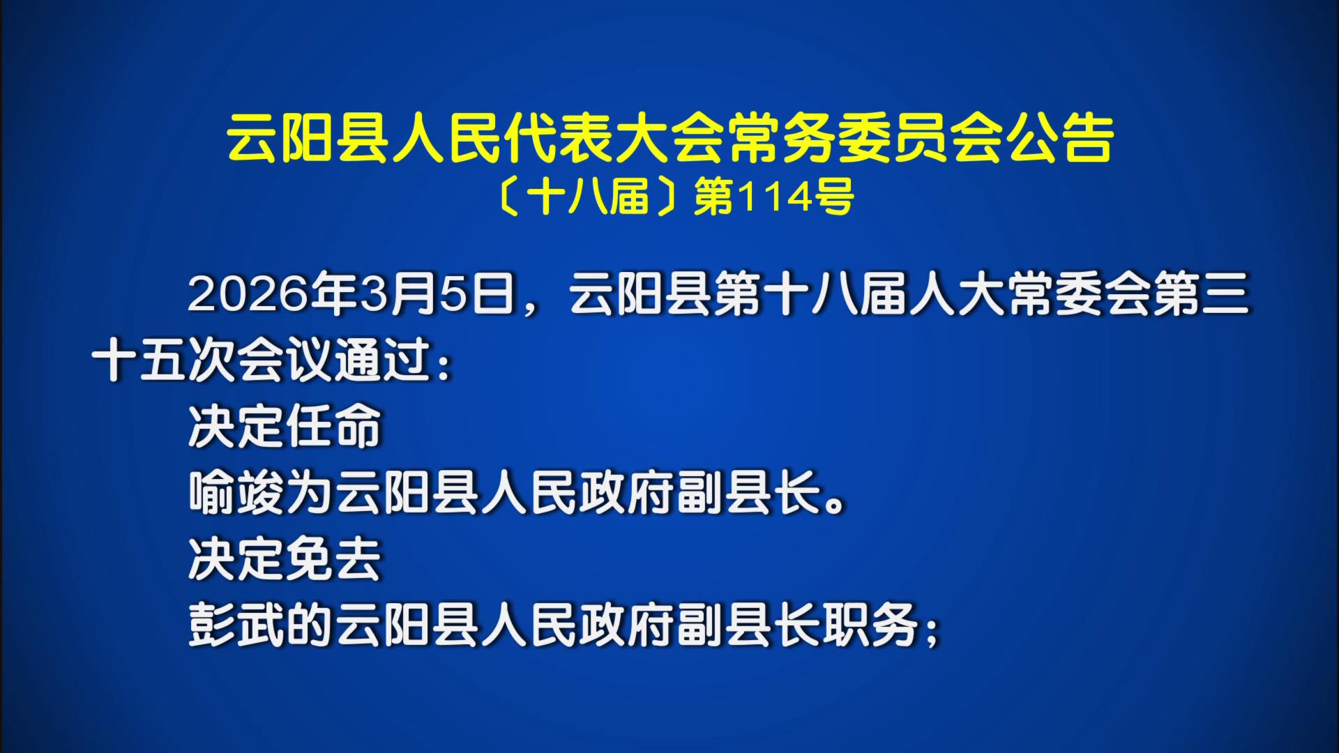 云阳县人民代表大会常务委员会公告