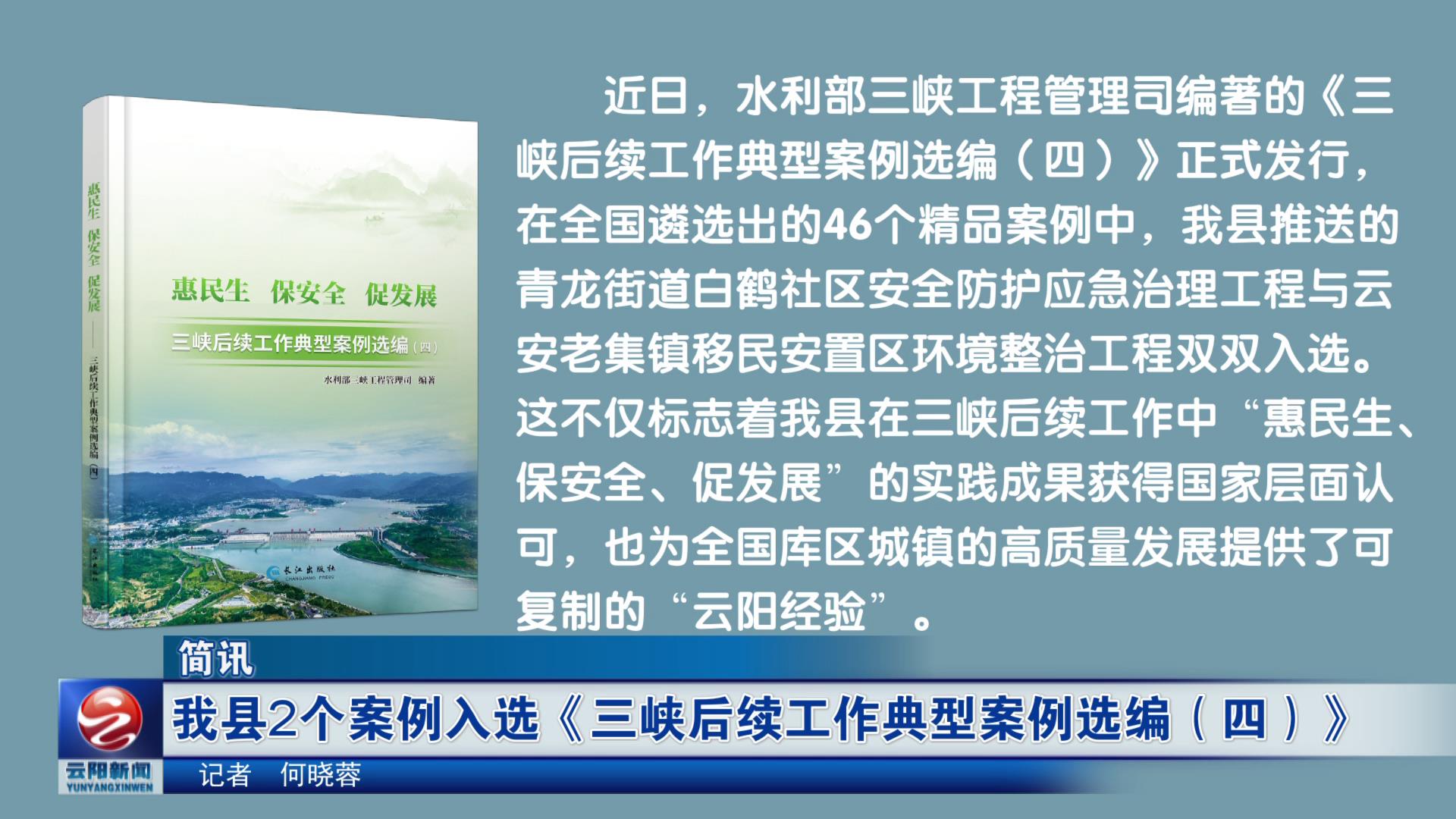 (简讯)云阳县2个案例入选《三峡后续工作典型案例选编(四)》
