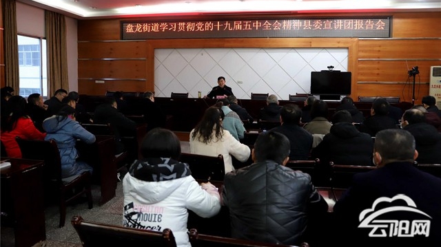 近日,学习贯彻党的十九届五中全会精神县委宣讲团报告会在盘龙街道举行,县人大常委会主任赵勇为盘龙街道干部职工、村社干部、人大代表作宣讲报告。