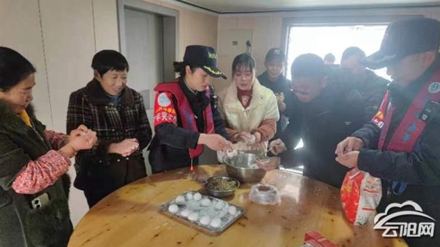 2月9日,云阳海事处组织曲堆子停泊区值班留守船员齐聚“佳鸿919”轮一起包汤圆、贴春联、庆新年。