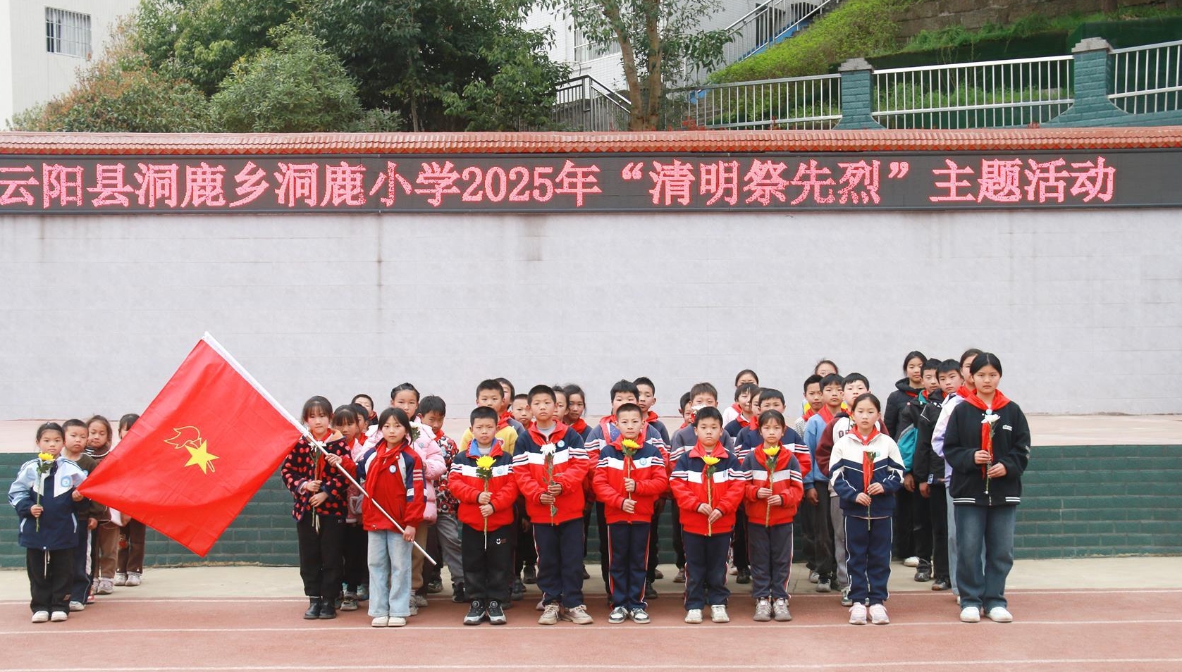 4月2日,洞鹿乡党委、政府组织洞鹿小学师生开展了“清明祭先烈”主题活动。
