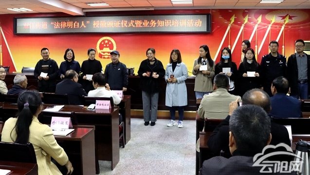 10月27日,双江街道开展“法律明白人”授徽颁证仪式暨业务知识培训活动。