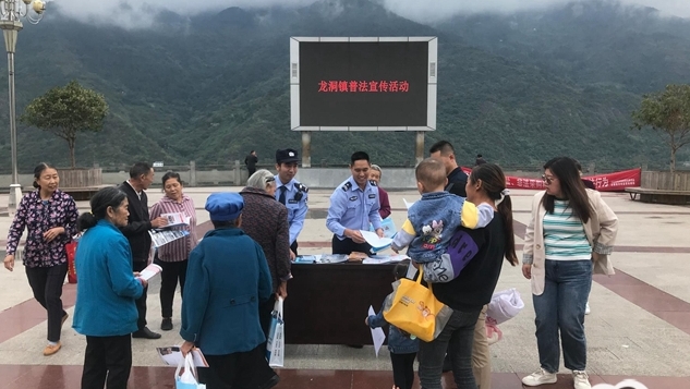 近日,龙洞镇平安办联合龙洞司法所、龙洞派出所工作人员到大麦沱社区望江广场开展了普法宣传活动。