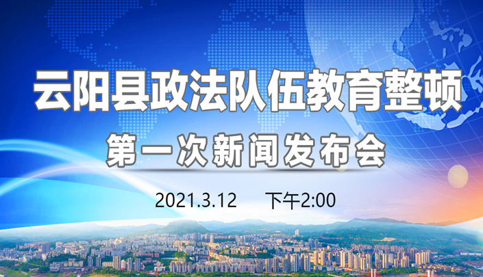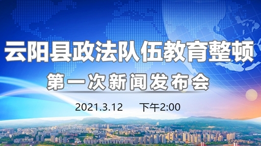 3月12日(星期五)下午2:00,云阳县人民政府新闻办公室将举行云阳县政法队伍教育整顿第一次新闻发布会。