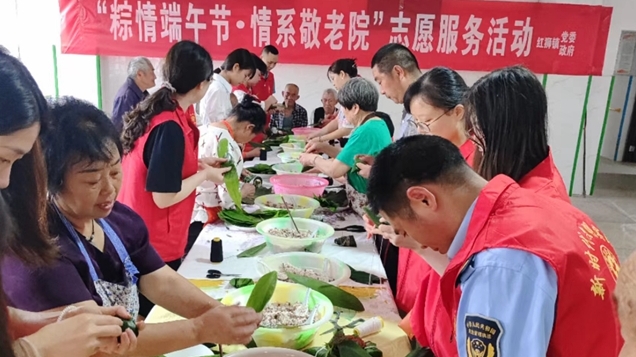 在端午佳节即将来临之际,6月21日,红狮镇组织志愿者到红狮敬老院开展"粽情端午节,情系敬老院"志愿服务活动。