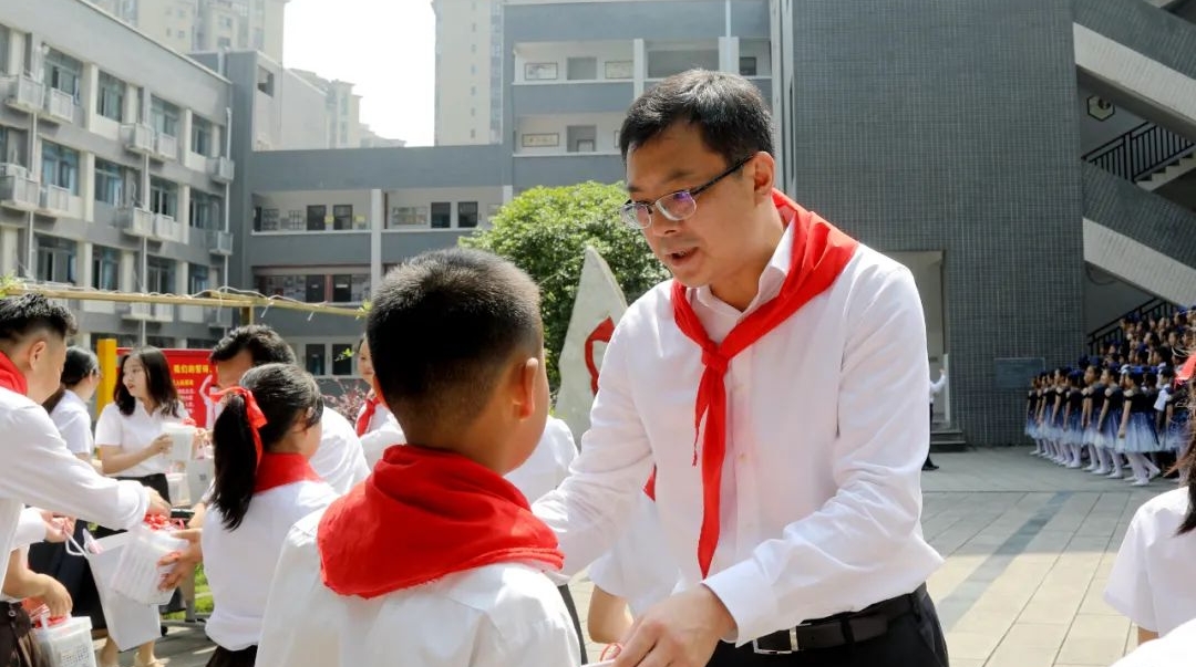 5月31日,平湖中学开展“粽情端午·放飞童心”活动。该校小学一年级13名学生光荣地加入了少先队队员。