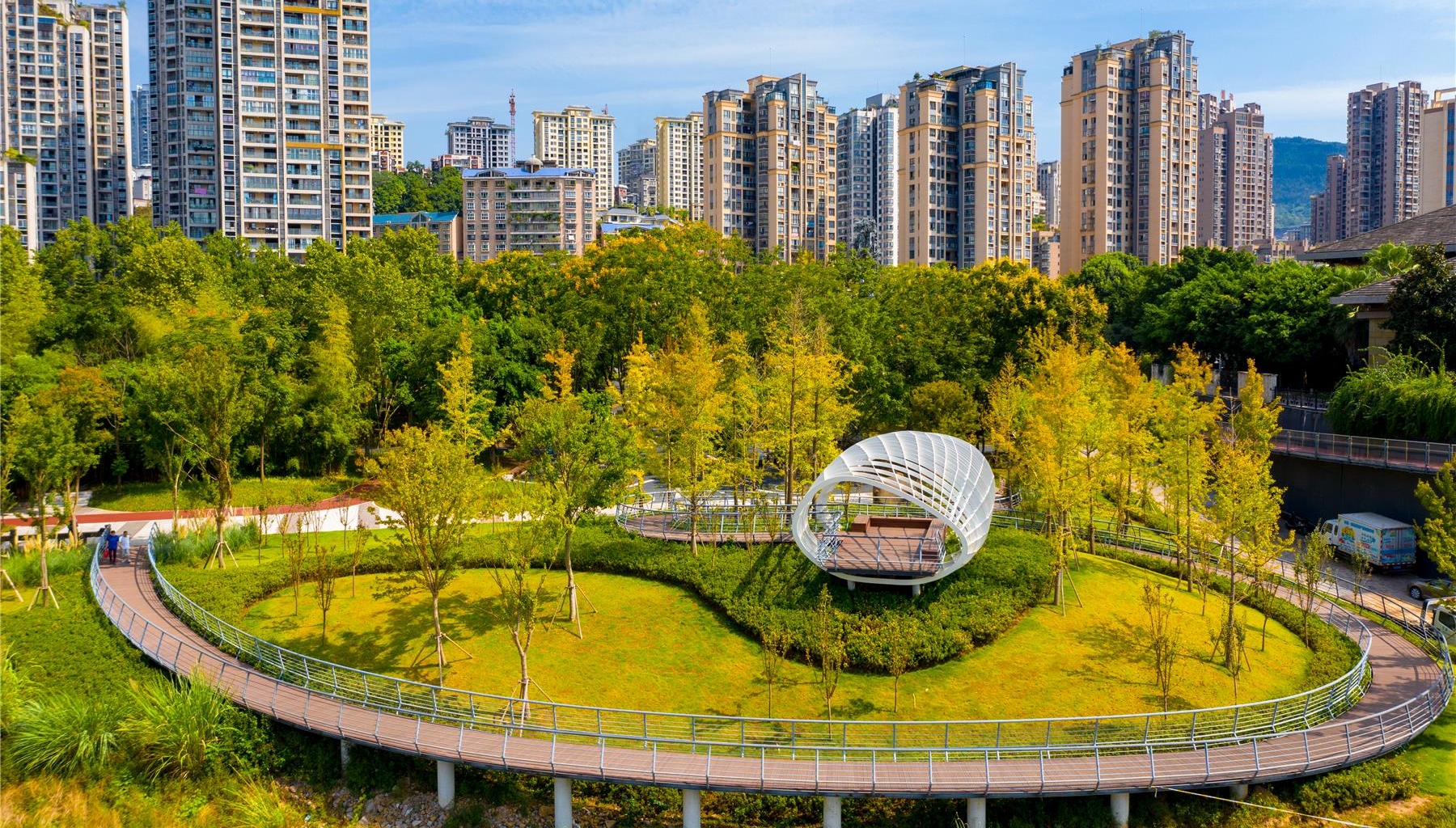 白鹭公园位于北部新区,澎溪河东岸,南起四方井公园,北至猪儿梁,总面积达22.2万平方米。