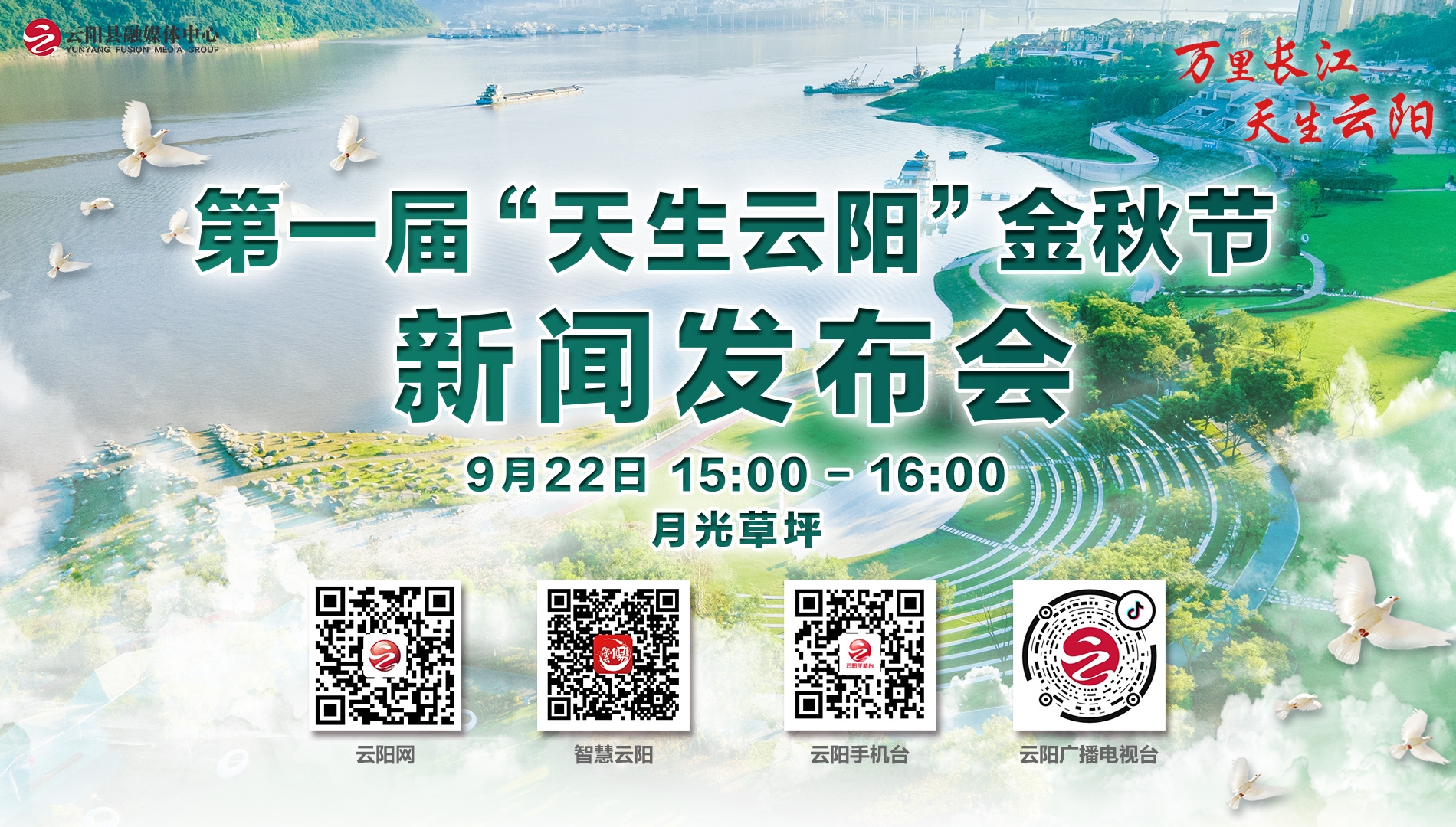 9月22日,云阳在环湖绿道月光草坪举行新闻发布会,宣布第一届“天生云阳”金秋节开幕……