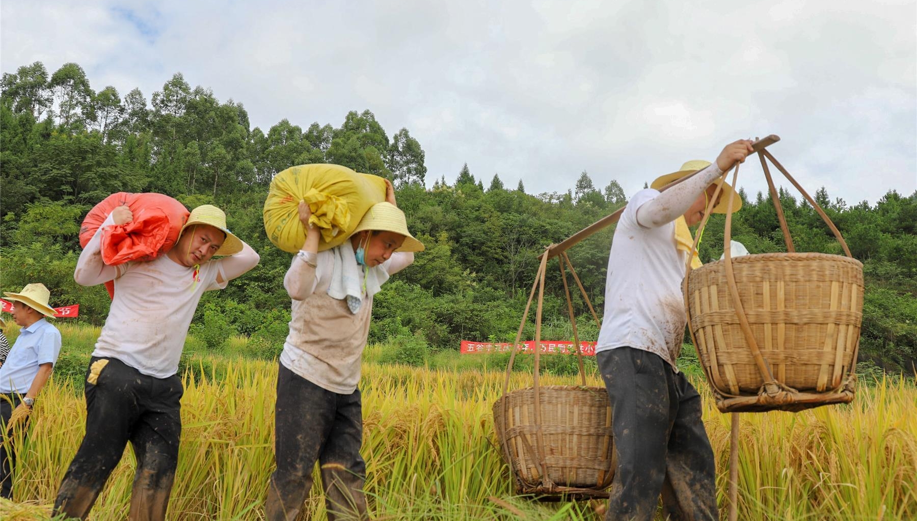 “金秋满谷仓,丰收遍地香。”渠马镇万余亩水稻迎来了收获季。近日,渠马镇惠龙村举办割稻比赛庆祝丰收。