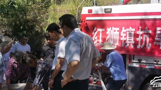 近日来,由于天气持续高温,红狮镇梅柏村部分组出现一定程度上的季节性缺水问题,红狮镇政府得知该情况后,决定由镇专职消防队出动消防水车为群众送水,开展农村饮水安全保障服务。