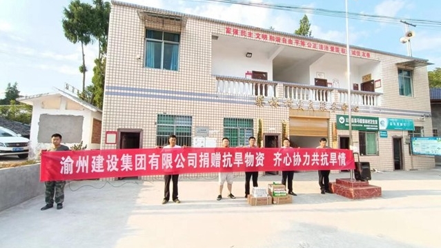 8月24日上午,渠马镇本地企业渝州建设集团有限公司满载着矿泉水、藿香正气液、风油精等抗旱物资……