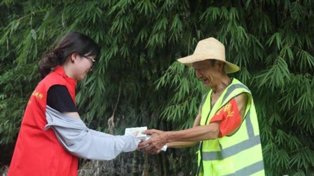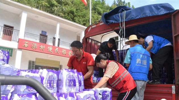 8月23日,团县委组织青年志愿者为石渠村村民送去“及时水”。