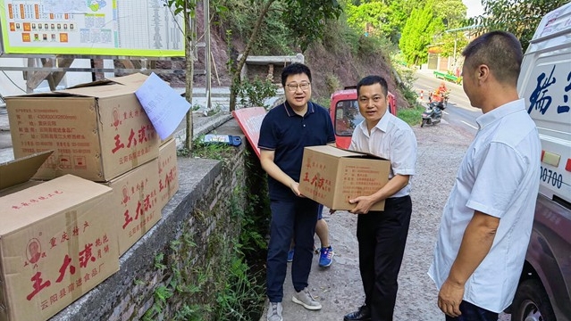8月23日,云阳县前进食品厂为水口镇佛安村送来PE给水管800米,月饼6件抗旱救灾物质,助力水口镇佛安村抗旱救灾。