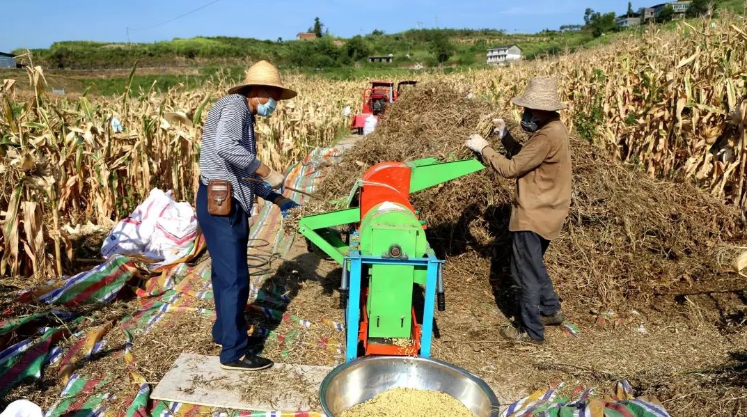 近日江口镇向家坪社区大豆玉米带状复合种植基地迎来丰收县农业农村委和县统计局的技术人员……