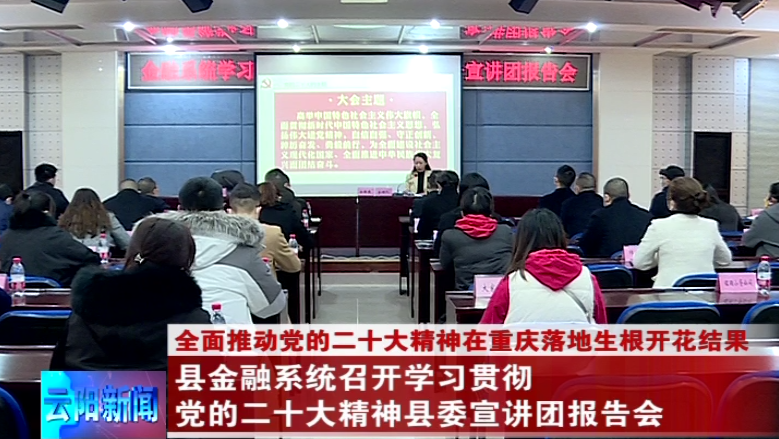 12月13日,县委宣讲团成员、县委常委、副县长谷颖捷到金融系统宣讲党的二十精神。