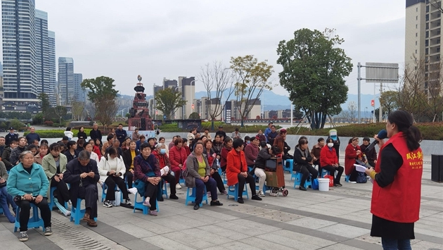 3月22日,在云阳县北部新区九街休闲广场上,一个群口快板《二十大光辉照云阳》节目表演,拉开了整场宣讲活动的序幕。