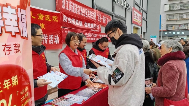 2月28日,双江街道莲花池社区联合共驻共建单位在莲花车站广场开展以“学习宣传党的二十大精神,向雷锋同志学习”为主题的志愿服务活动。