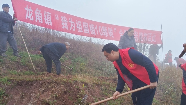 3月14日上午,龙角镇组织开展“我为祖国植10颗树”活动,大家用义务植树的干劲助力人居环境整治提升。