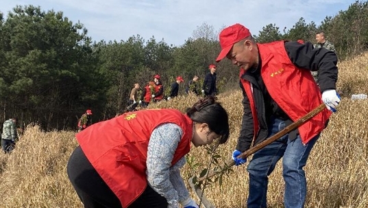 3月15日上午,江口镇开展“我为祖国植十棵树,为云阳大地添新绿”义务植树活动。