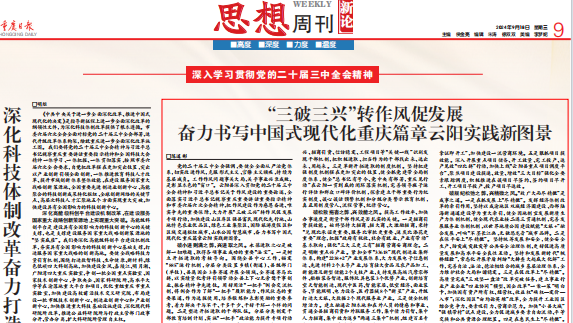 9月18日重庆日报刊发中共云阳县委书记陈道彬署名文章《“三破三兴”转作风促发展奋力书写中国式现代化重庆篇章云阳实践新图景》……