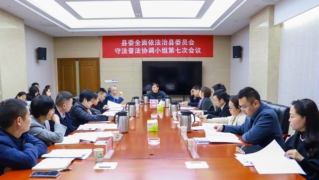 11月26日,县委全面依法治县委员会守法普法协调小组第七次会议召开。县委常委、宣传部部长、县守法普法协调小组组长曾郴主持会议并讲话。