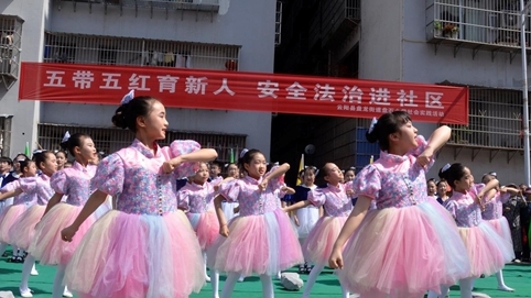 近日,盘石小学在怡心广场开展了以“五带五红育新人,安全法治进社区”为主题的社会实践活动。