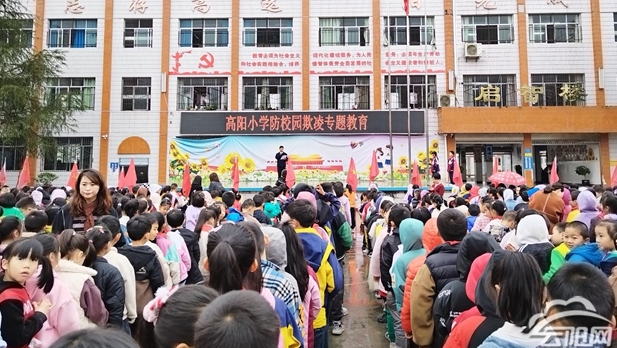 3月27日,高阳小学邀请高阳派出所民警到校为全体师生上了一堂以“远离校园欺凌,共建和谐校园”为主题的防校园欺凌专题法治教育课。