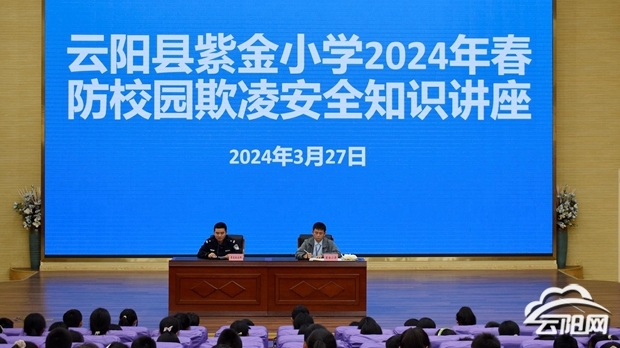 3月27日,紫金小学特邀青龙派出所民警到校开展“拒绝校园欺凌 争做守法少年”专题法治教育。