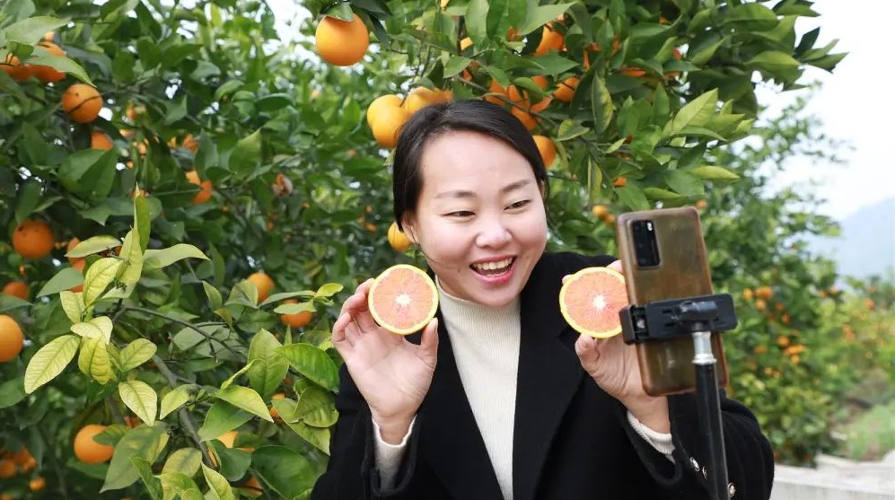 “家人们,这是我们云阳的红橙,果大饱满、汁水充足,喜欢吃的家人们可以点击下面的小黄车下单!”初次见到柳井兰,她正穿梭在柑橘地里,向观看直播的网友介绍云阳红橙的品质、口感。