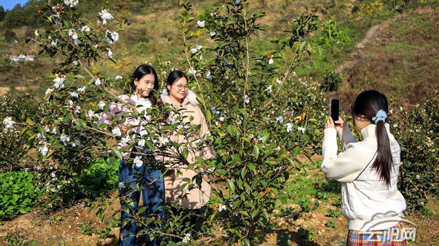 眼下正值冬日,江口镇的千亩油茶迎来了盛花期,如雪般洁白的油茶花肆意绽放,吸引了不少市民纷纷前往打卡拍照,沉浸于这片冬日里的独特美景。