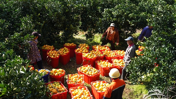时下,正是柑橘成熟的季节。连日来,在养鹿镇的连绵山丘上,无人机和“小火车”来回穿梭,让大山深处呈现出采收新景象。