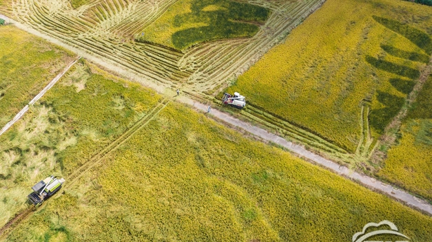 秋高气爽,稻谷飘香。眼下,我县10万亩高山水稻进入收获期。当地抢抓农时组织农机开镰收割,田间地头,一派繁忙景象。