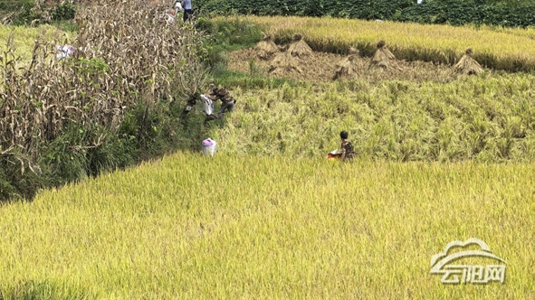 秋收时节,稻谷飘香。在中国传统村落凤鸣镇黎明古村,连片30余亩水稻迎来丰收。
