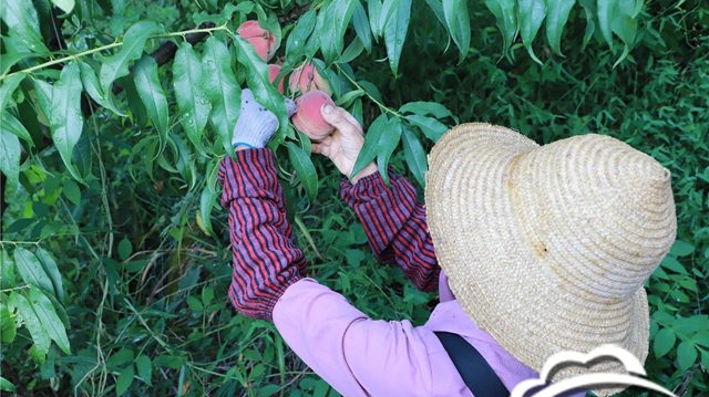 渠马镇渠富村的500亩秋彤桃园迎来丰收季,饱满红润的桃子挂满枝头,果香四溢。