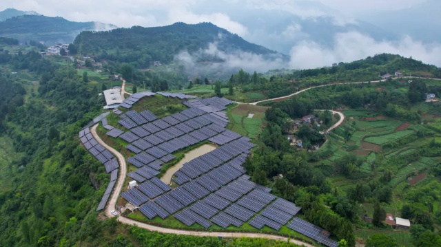 仲夏清晨,宝坪镇凤凰村的荒坡上,村民李树平挥镰除草,阳光洒在光伏矩阵上,泛起粼粼波光。