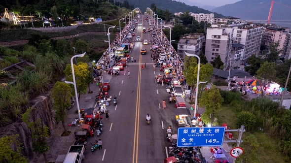 7月15日傍晚,云阳县青龙街道复兴社区2组的高碧兰,在梨树坡大桥(被称为“网红桥”)旁支起烤炉,一边熟练地翻烤着玉米,一边热情吆喝。
