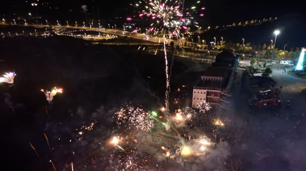工业园区黄岭组团和曙光停车场两处烟花爆竹临时集中燃放点成为市民欢度佳节的海洋