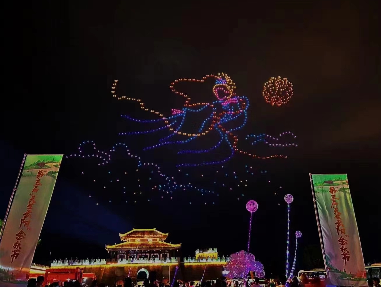 云阳:迎双节、送祝福 无人机灯光秀闪耀三峡库区夜空