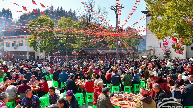 新春将至,年味渐浓。2月12日,云阳县人和街道凤岭村的文化广场上,百余张圆桌整齐排开,热气腾腾的农家菜肴接连上桌。