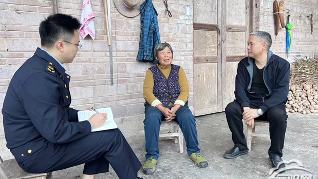 近日,云阳县渠马镇将军梁社区75岁的刘大妈,在社区网格员协助下完成社保年审,笑着竖起大拇指。