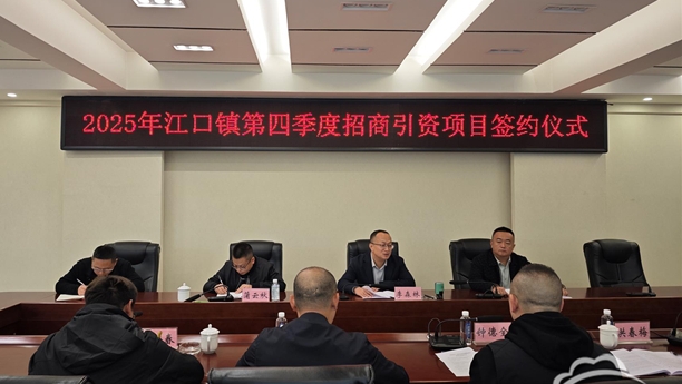 11月5日,江口镇人民政府三楼中型会议室内,2025年第四季度招商引资项目签约仪式隆重举行。
