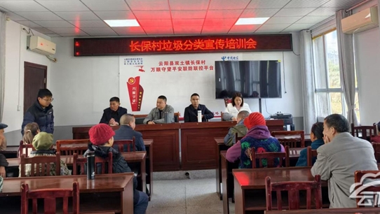 近日,双土镇长保村在村办公室召开垃圾分类专题宣传会,镇驻村领导、村“两委”干部、驻村工作队及20余名村民代表参加会议。