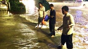 深圳降2008年来最强暴雨 民众当街捉鱼