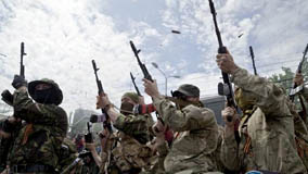 亲俄武装抵制乌克兰大选 朝天鸣枪开装甲车游行