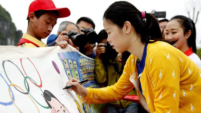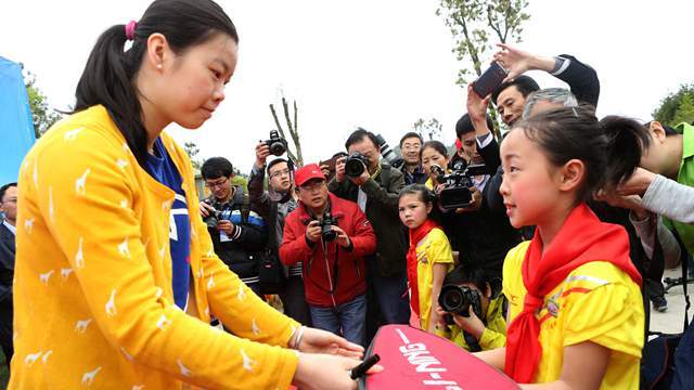 - 活动议程3:山区留守女童展示绘画作品,李雪芮签名留念。